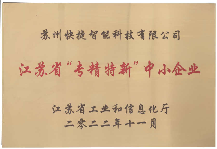 截止2025年,快捷智能已榮獲國(guó)家高新技術(shù)企業(yè)、科技型中小企業(yè)、瞪羚企業(yè)、專精特新中小企業(yè)、企業(yè)技術(shù)中心等多項(xiàng)榮譽(yù),通過(guò)質(zhì)量管理體系認(rèn)證等多項(xiàng)企業(yè)和產(chǎn)品認(rèn)證。